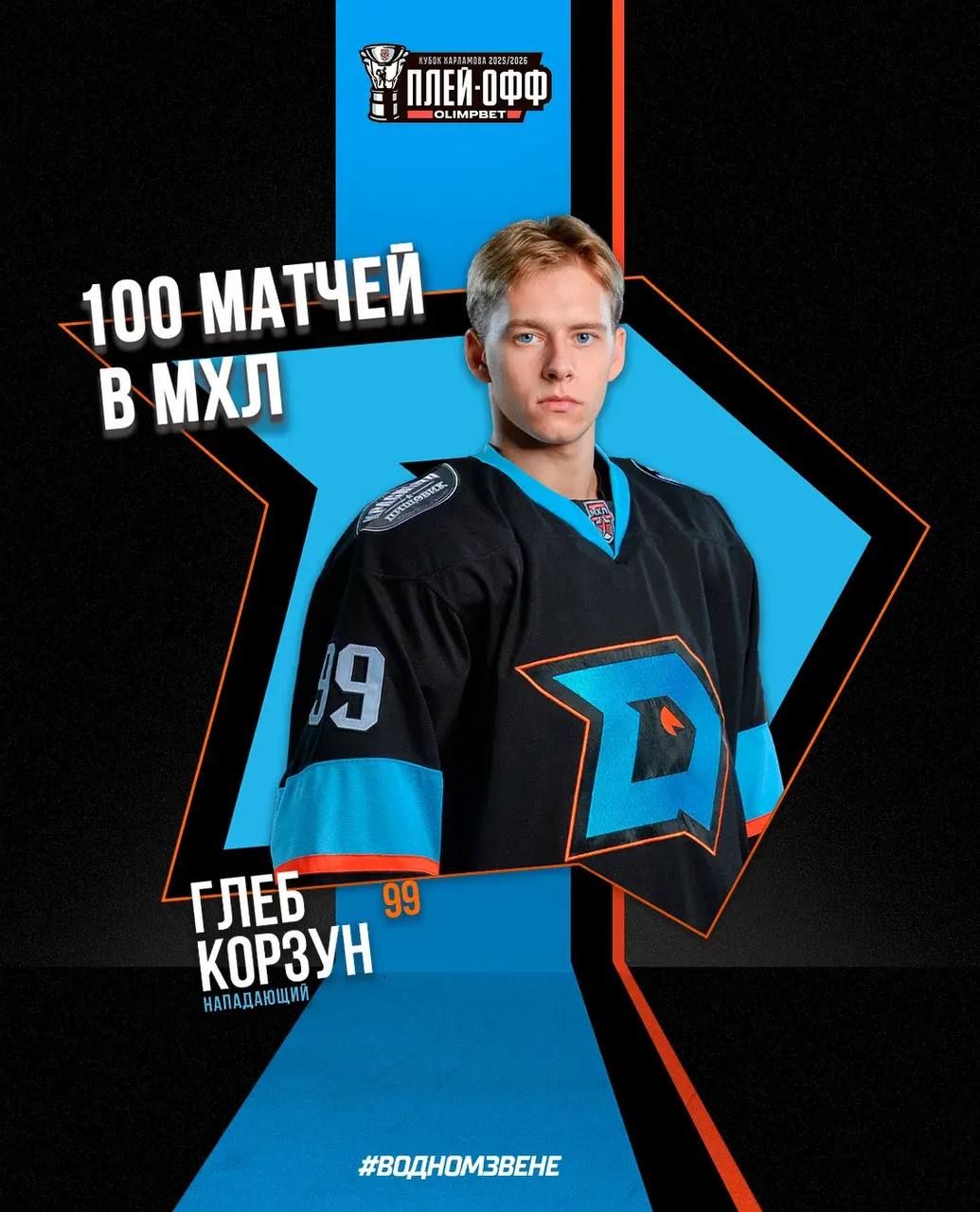 Первый матч четвертьфинальной серии плей-офф Кубка Харламова стал юбилейный для нападающего «Динамо-Шинника» Глеба Корзуна.