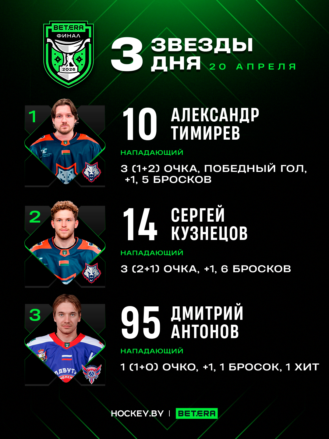 Александр Тимирев, Сергей Кузнецов и Дмитрий Антонов – три звезды понедельника в финальной серии Betera-Экстралиги