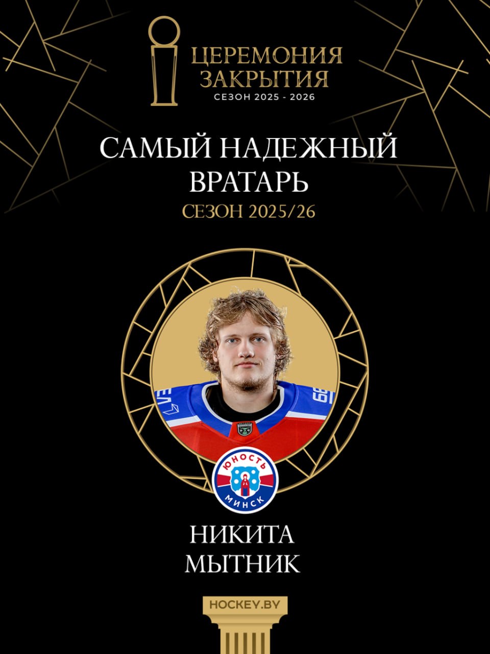 1. Самый надежный вратарь – Никита Мытник («Юность»). Главным критерием определения победителя здесь является коэффициент надежности в регулярном чемпионате. Мытник завершил его с показателем 1.52, опередив напарника по «Юности» Илью Румянцева [1.57] и Илью Горбунова из «Шахтера» [1.69].