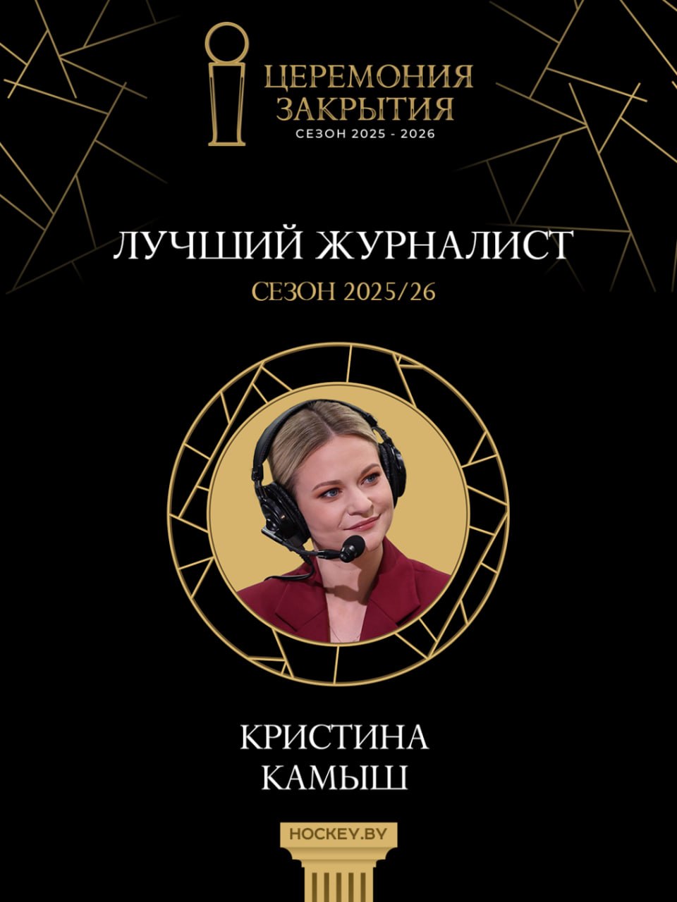 18:30. Кристина Камыш в третий раз получает приз для лучшего хоккейного журналиста сезона. Прежде она получала эту награду в 2023 и 2025 годах.