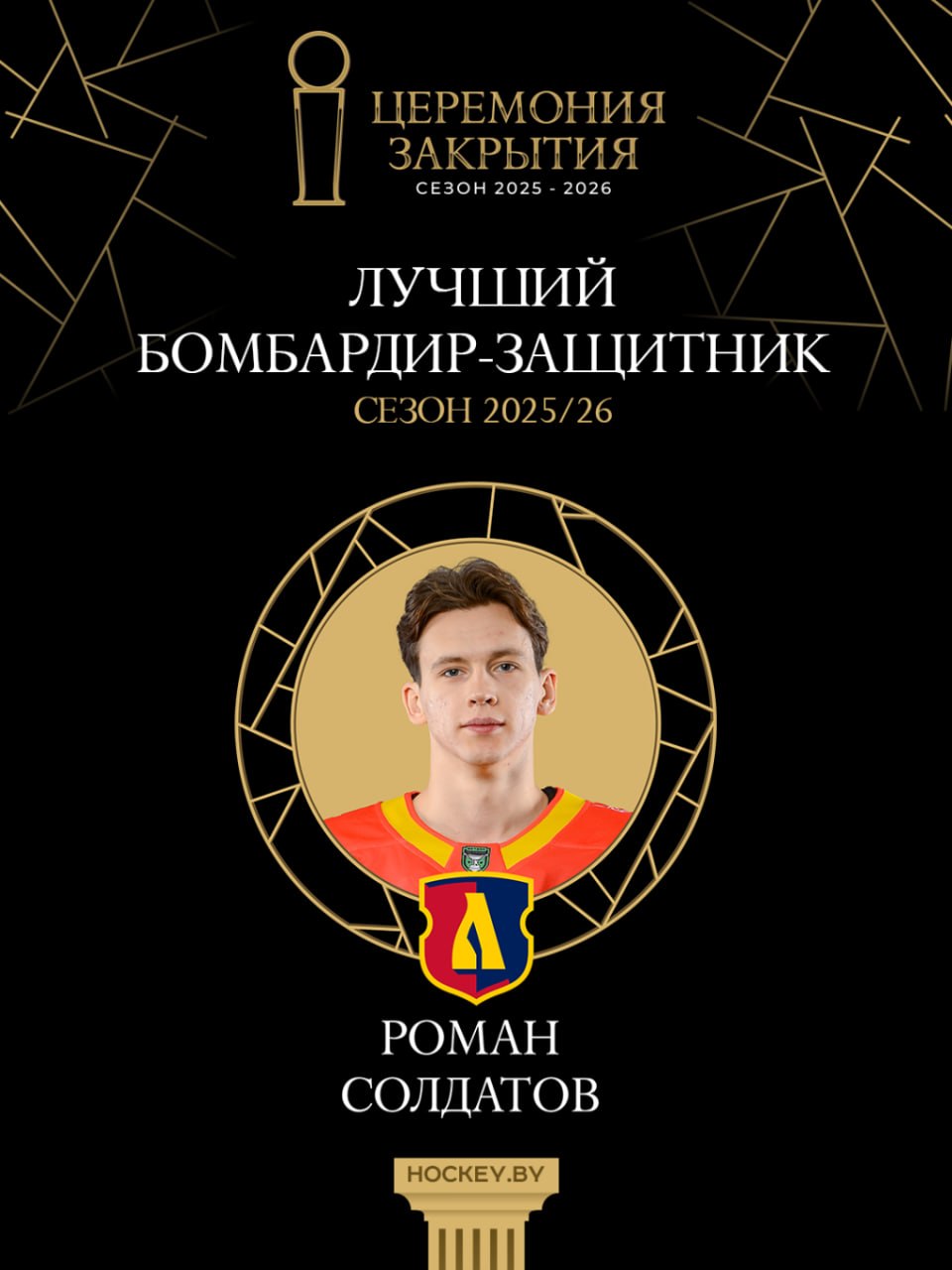 2. Лучший бомбардир-защитник – Роман Солдатов («Лида»). Призом награждается самый результативный игрок обороны в регулярном чемпионате. Роман выдал лучший в карьере результат, набрав 34 (14+20) балла. В гонке он на 1 очко опередил коллегу из «Динамо-Молодечно» Владислава Суркова [9+24].