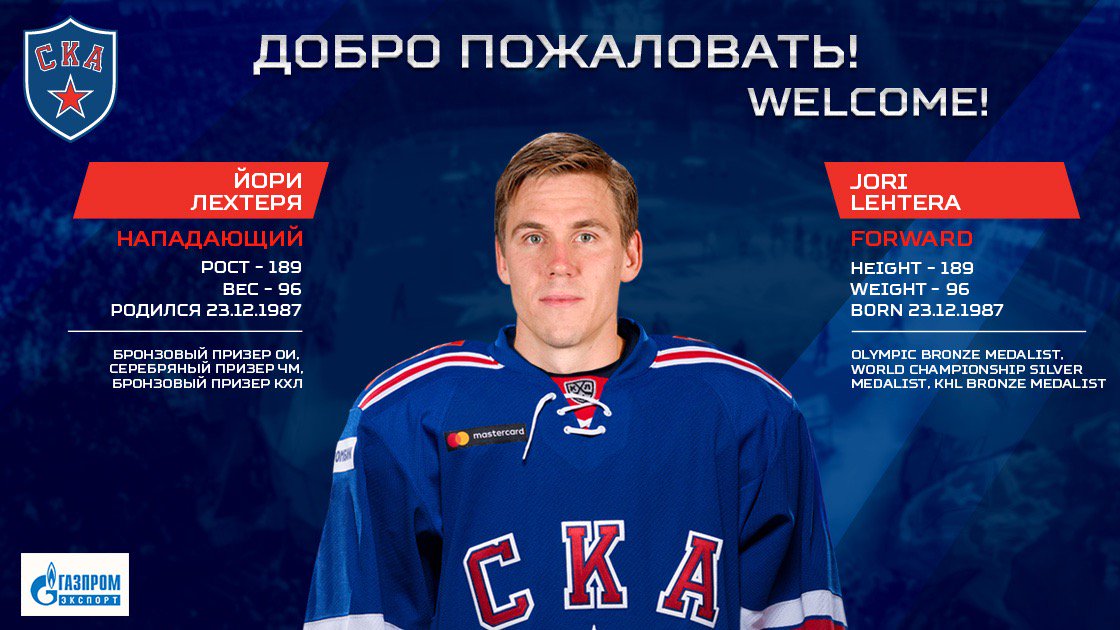 Хоккейный клуб СКА подписал контракт с финским нападающим Йори Лехтеря. Соглашение рассчитано на один год и будет действовать до конца сезона 2019/20.