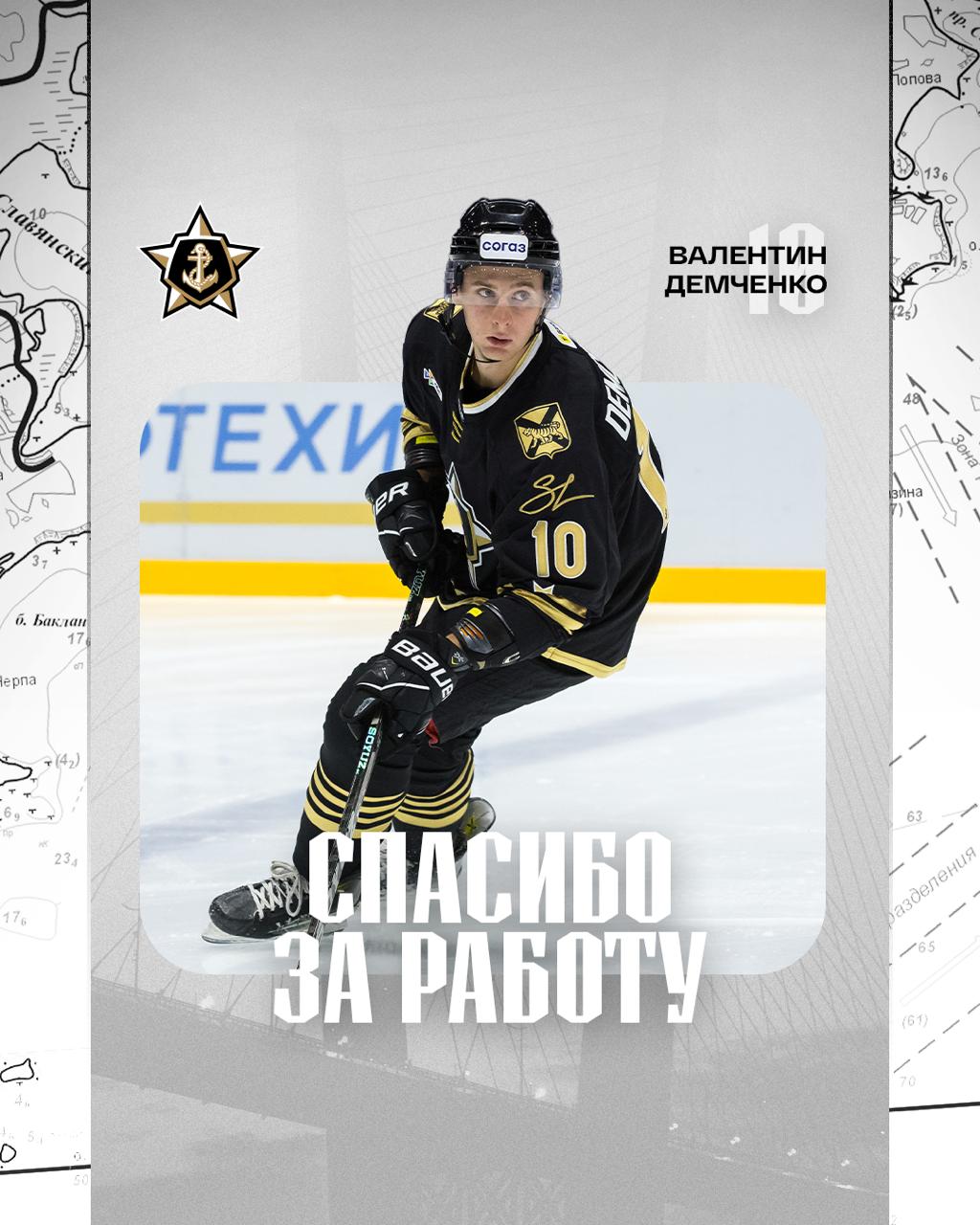В клуб из Владивостока Демченко перешел летом, но в КХЛ за «моряков» так и не сыграл. В прошлом сезоне Валентин стал чемпионом Betera-Экстралиги вместе с «Юностью», а также был признан лучшим хоккеистом чемпионата.