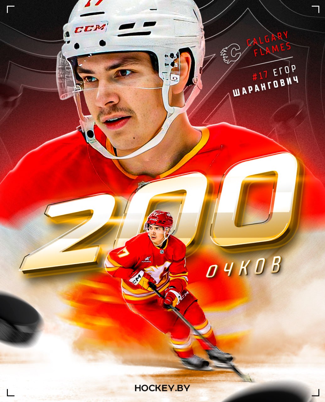Белорусский нападающий «Калгари» Егор Шарангович (1998) на 6-й минуте реализовал большинство и открыл счет в этом матче. Так на его счету стало 200 (103+97) результативных очков в регулярных чемпионатах НХЛ. Больше набрали только три белорусских хоккеиста: