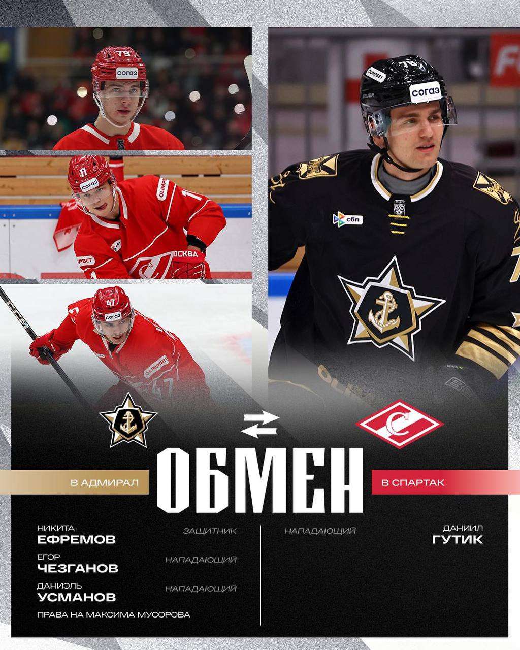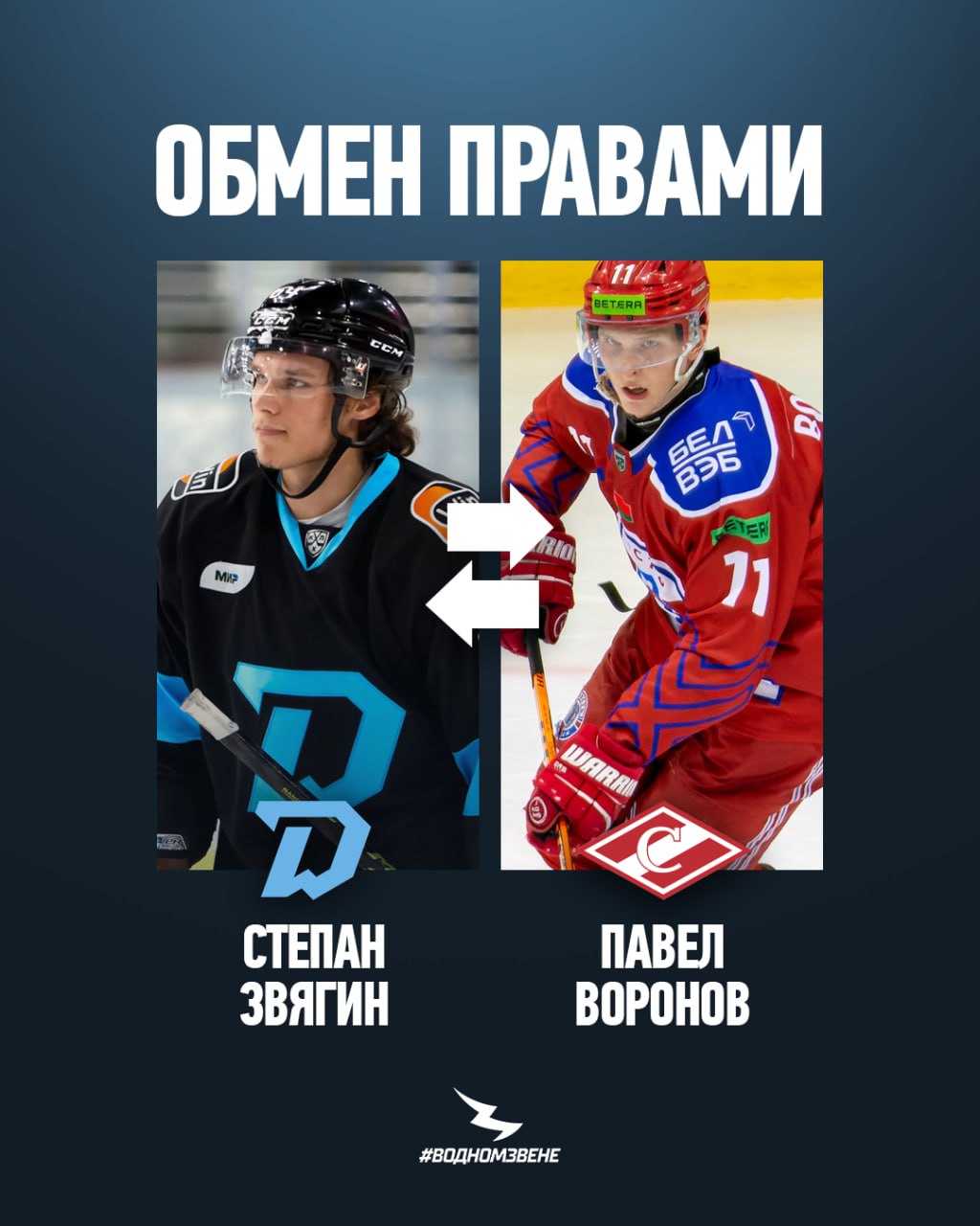 В четверг минское «Динамо» и «Спартак» произвели обмен, в результате которого «зубры» получили права на защитника Павла Воронова, а нападающий Степан Звягин отправился в Москву. В воскресенье было объявлено, что «красно-белые» подписали с форвардом двусторонний контракт.