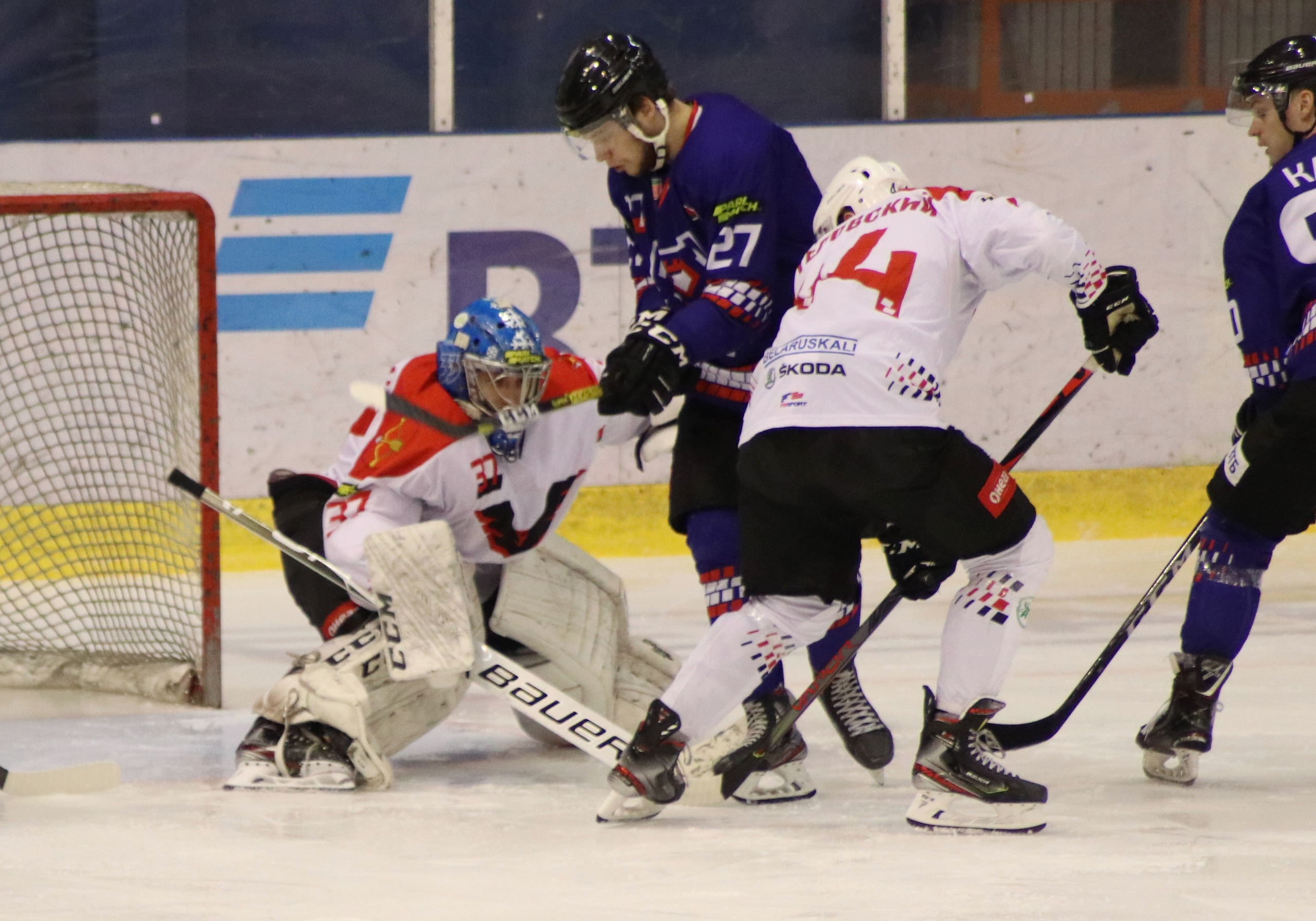 В следующий раз счет изменился лишь на 45-й минуте. «Зубры» играли в большинстве после удаления Павла Степанова, и за две секунды до его выхода на лед все же наказали «ястребов». Кафеев перевел шайбу Качану, который бросил от синей линии. Бобарико с этой попыткой справился, но на пятаке самым расторопным оказался Денис Донской – 2:0.